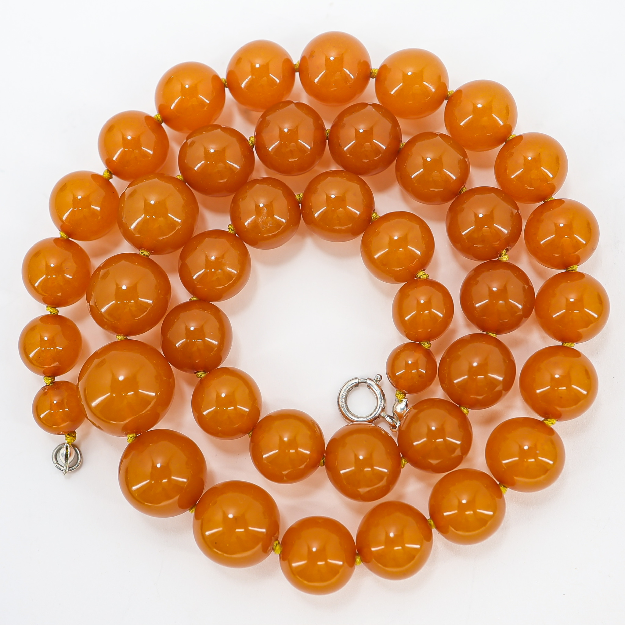Golden Orange Baltic Amber Bead Necklace 24” 57g 80s USSR Origin Restrung W Sterling Clasp