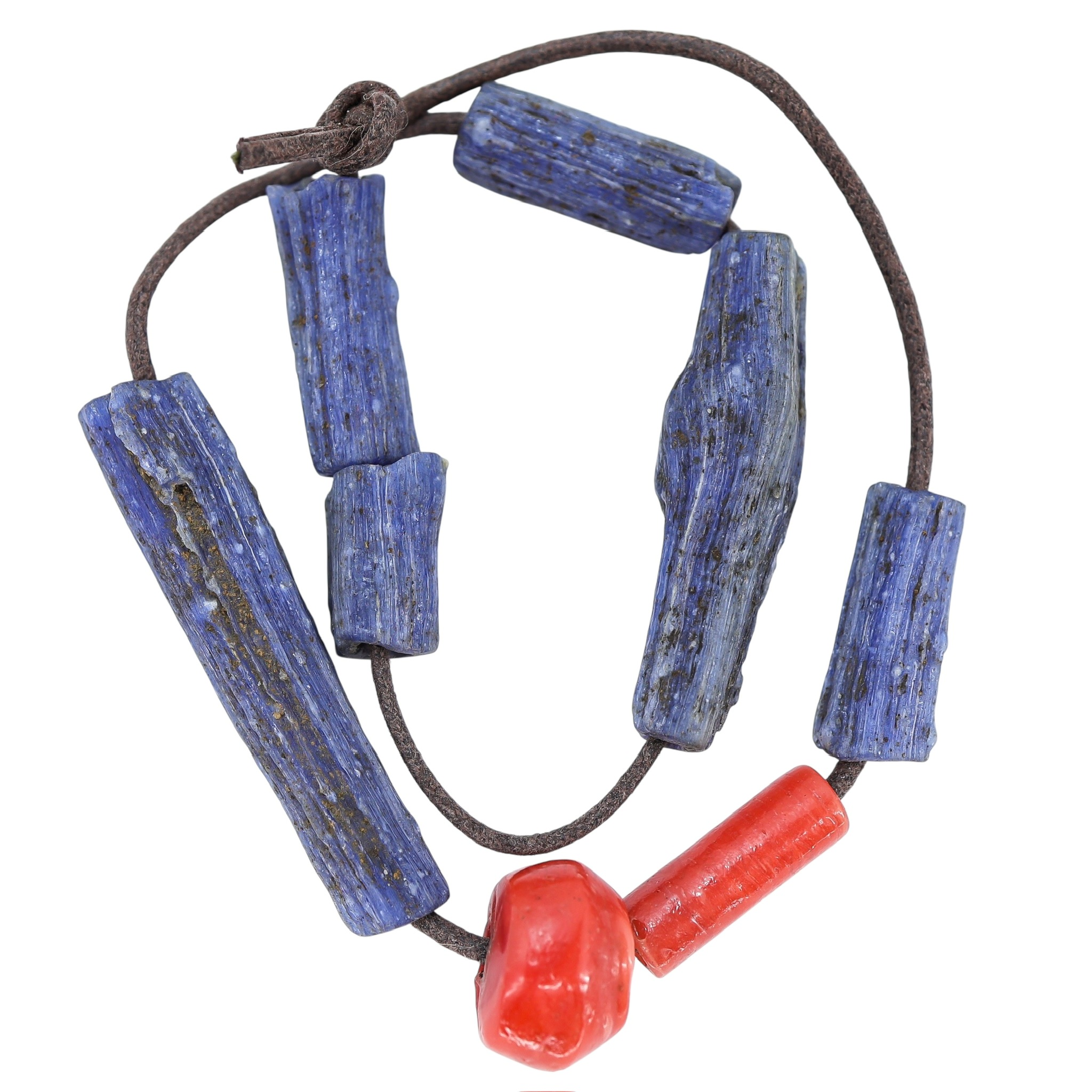 Handmade West African beads carved from fragments of recycled furnace/crucible glass. The fibrous cobalt glass shows natural inclusions and striations.