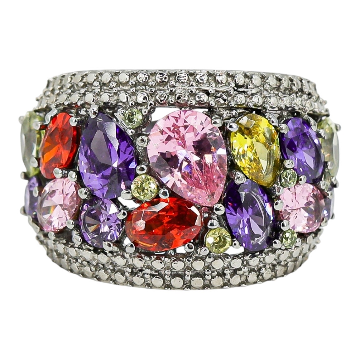 Wide Multicolor Cocktail Ring Stainless Steel Pavé Band Size 8 Statement Ring